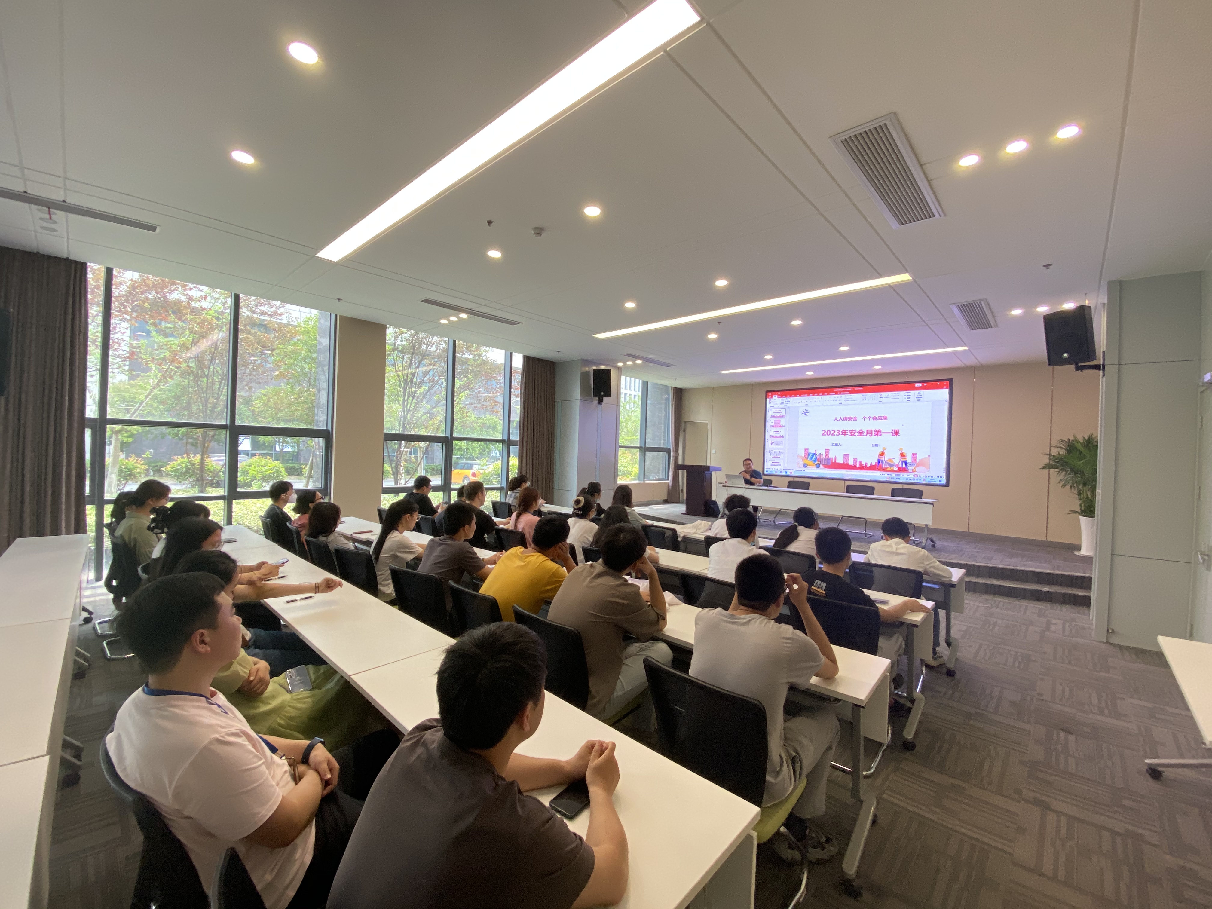為充分發揮安全生產月宣傳教育源頭性、基礎性作用,不斷提高“人人講安全,個個會應急”安全主題的影響力和覆蓋面,華威醫藥找準關鍵點、緊抓突破口,堅持“安全工作,宣傳先行”,持續在兩棟研發大樓的安全宣傳上下功夫、做文章。通過安全主題海報、大屏幕視頻展示等宣傳措施,持續地、直觀的將宣傳工作落到實處。