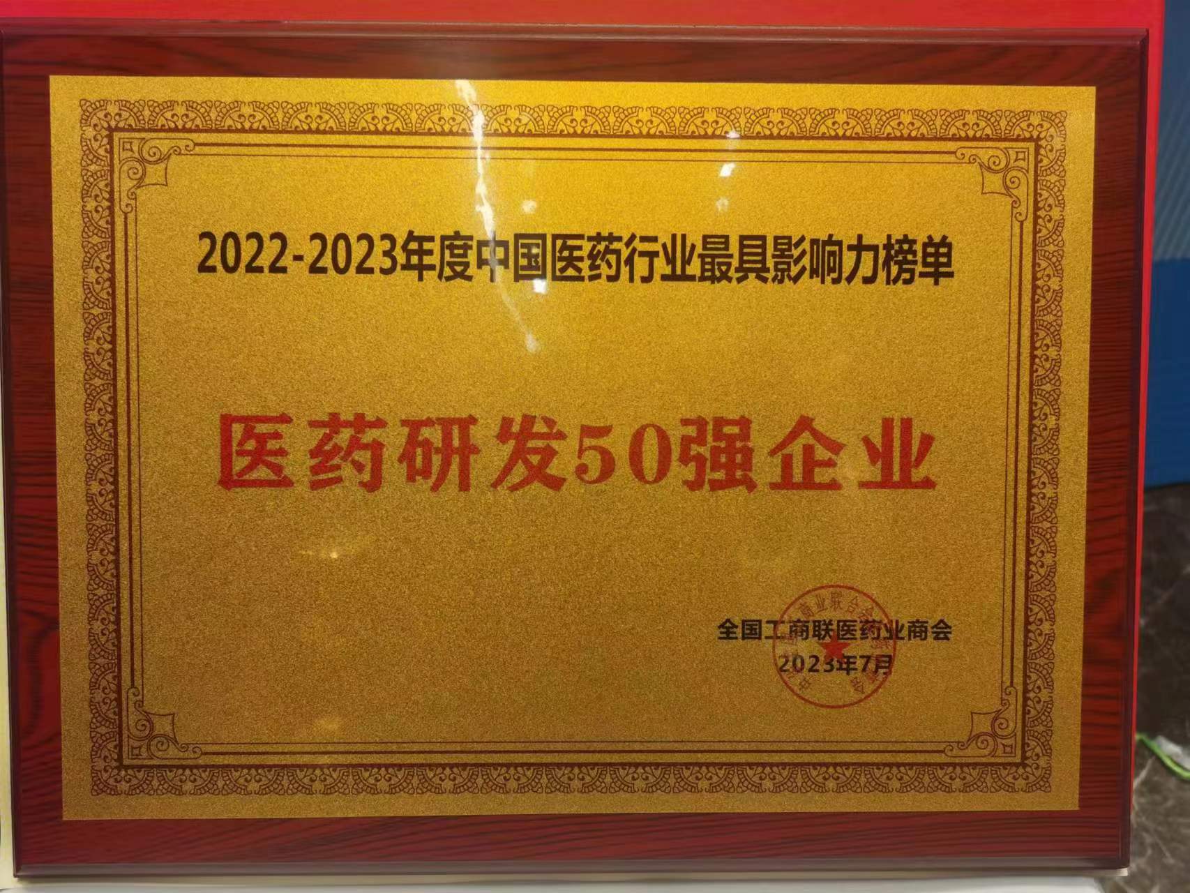 2023年7月4日,由全國工商聯醫藥業商會、黑龍江省工商聯、黑龍江省發改委共同主辦的“2022-2023年度中國醫藥行業最具影響力榜單發布會第十五屆中國醫藥產業發展高峰論壇”正式發布了——“2022-2023年度中國醫藥行業最具影響力榜單”,華威醫藥憑借自身雄厚實力再次榮耀入選“中國醫藥研發50強企業“。